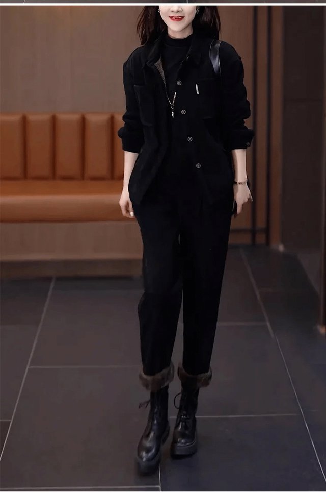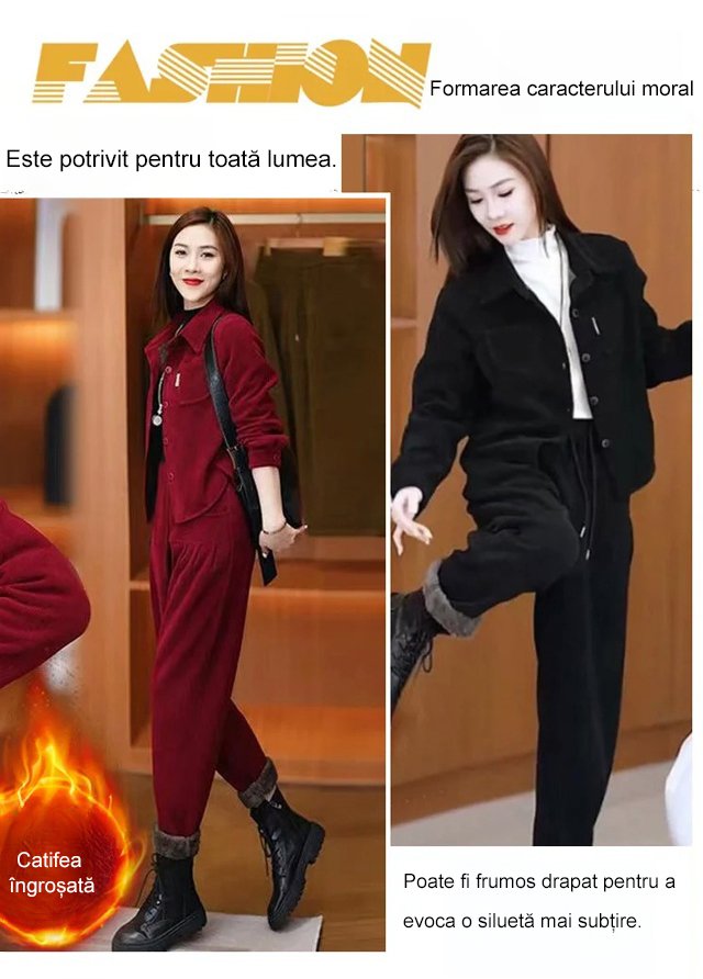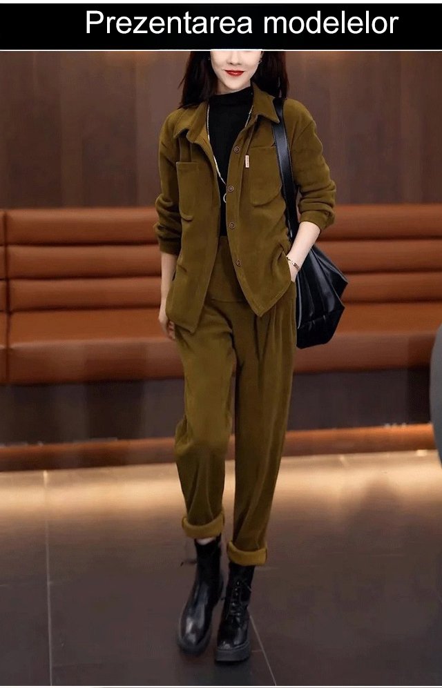 Pantaloni casual de iarnă cu talie înaltă și talie elastică, set de două piese